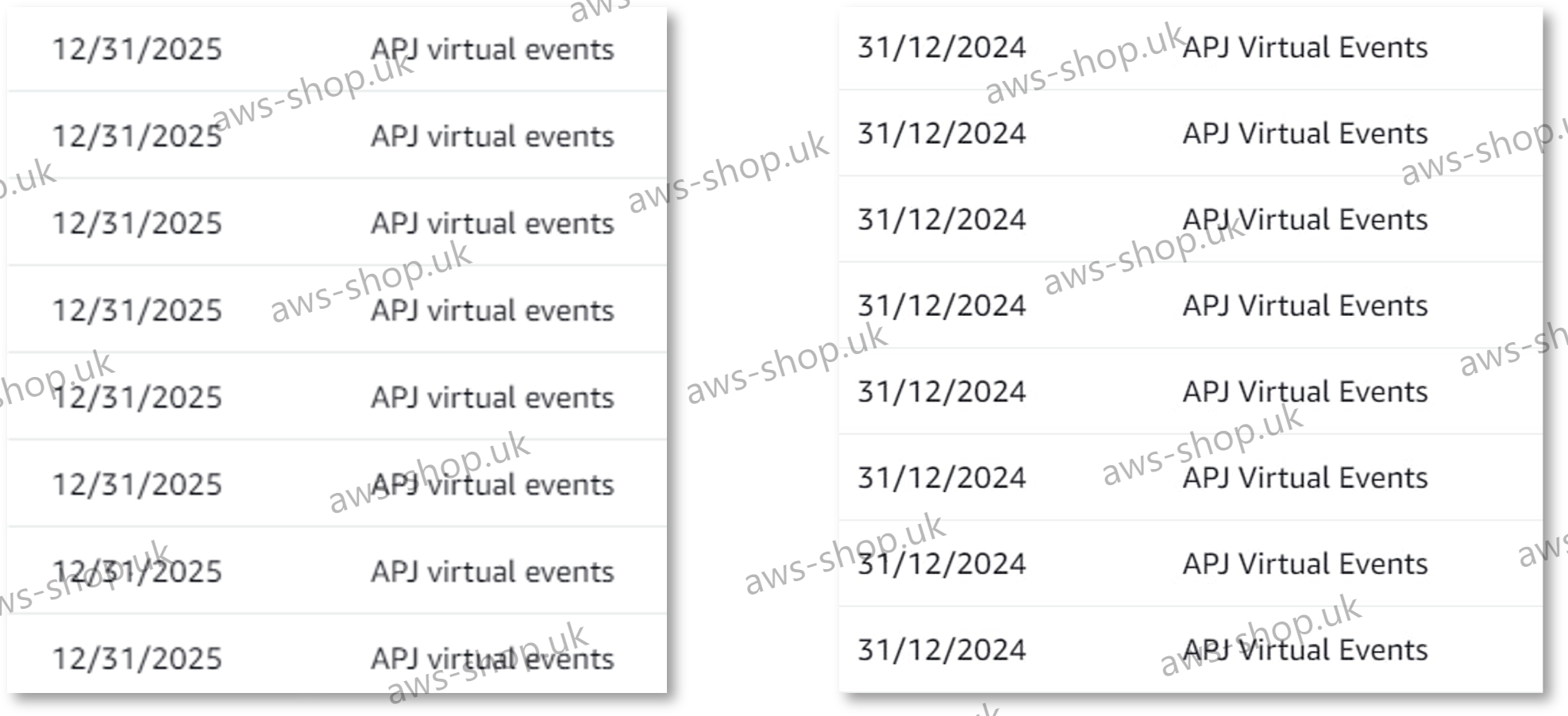 - 下图左边和右边的代金券,尽管它们的服务抵扣金额名称都为 APJ virtual events,但是因为它们的到期日期不同,所以它们不是同一批次的代金券。
