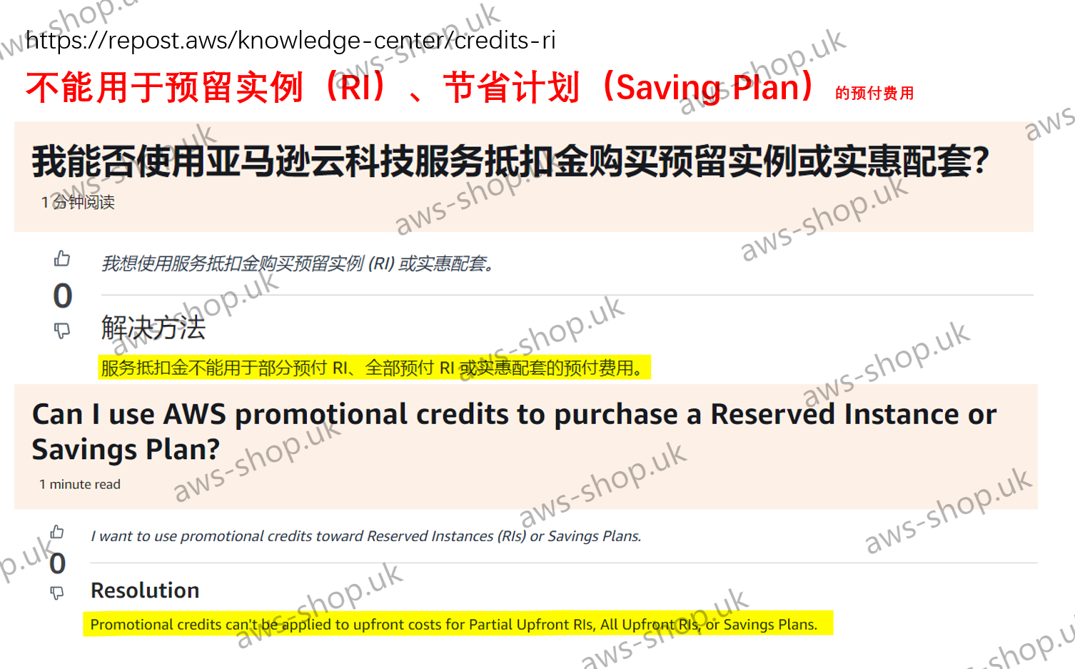 严格来说aws代金券并不是不能抵扣预留实例、节省计划的费用,而是不能抵扣其中的 预付费部分 的费用。